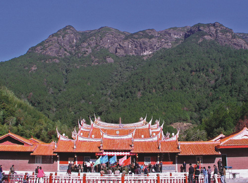 戴云山开发历史悠久,史载南北朝就有僧人至此开发。唐时,泉州开元寺印度高僧袒膊(名知亮),仰慕戴云山钟灵毓秀,常自言:“身在紫云,显在戴云”(紫云即指开元寺),他常与其师慈感到戴云山结庐而居,还写下许多赞美戴云山的诗句,其中最著名的一首是这样写的: