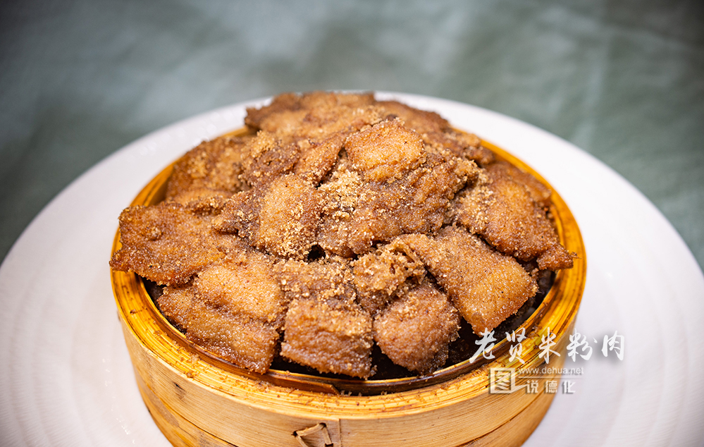 【米粉肉】米粉肉,是德化人民就地取材,烹制的一道美味佳肴。先把五花肉切片,用酱油和料酒等拌匀入味,均匀裹上米粉。如果怕油腻,可以在盘底铺上芋头(或淮山),把米粉肉放在上面码好,然后上锅大火蒸熟即可。出锅的米粉肉软嫩可口,芋头酥烂爽滑。荣获2020德化“旅游名小吃”称号。