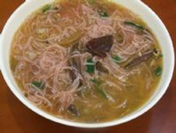 烹制方法:葱头、猪油加热炒香,鸡清汤煮红菇丁,鸡蛋打散,面线过水煮透捞出,再与以上三项热拌均匀,即成。
